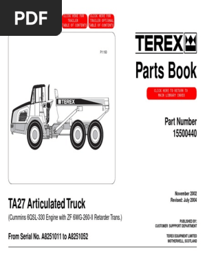 Web Terex TA25 TA27 articulated truck parts book TEREX-15274226 English 1890 English. Excavator parts manual free pdf instructions.